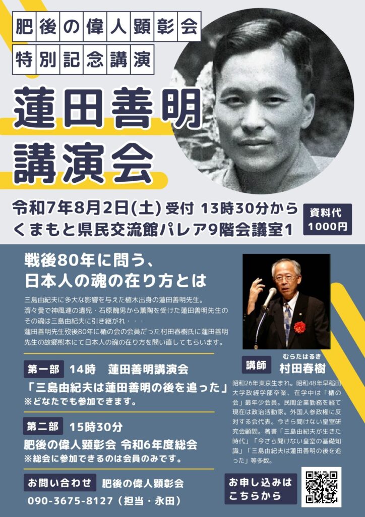 今年は村田春樹氏を講師に迎えて蓮田善明先生について講演していただきます。